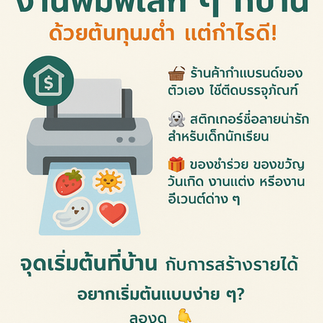 เริ่มวันนี้ ไม่ต้องรอ! หากคุณอยากลองพิมพ์งานแบบมืออาชีพโดยไม่ต้องลงทุนอุปกรณ์แพง ลองดูบริการของที่นี่ 👉 https://www.theprintshopping.com/printondemand แล้วคุณจะรู้ว่า “งานพิมพ์เล็ก ๆ” สร้างรายได้ไม่เล็กเลย